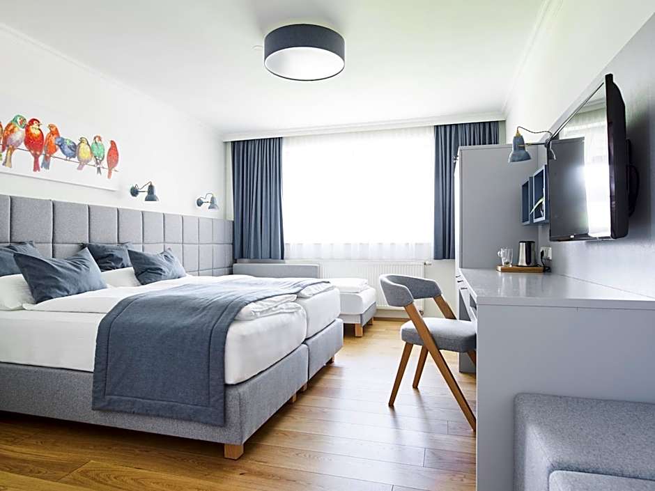 Offering free toiletries, this triple room includes a private bathroom with a shower and a hairdryer. The triple room features parquet floors, a seating area with a flat-screen TV with cable channels, a tea and coffee maker, a safe deposit box, as well as heating. The unit offers 2 beds.